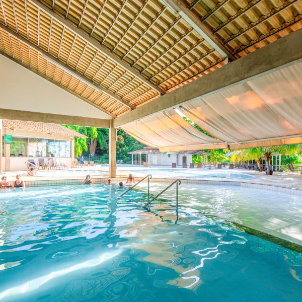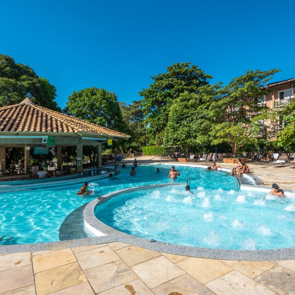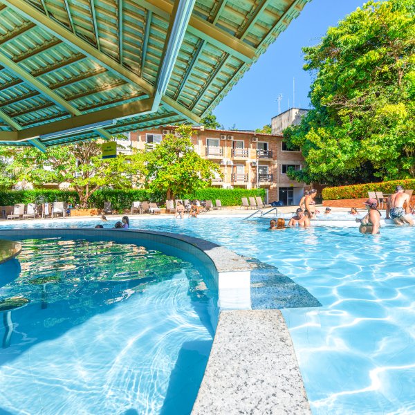 O Thermas diRoma Hotel, localizado em Caldas Novas, Goiás, é um dos mais tradicionais e completos empreendimentos do Grupo diRoma, referência nacional em hospedagem e lazer termal. Situado em frente ao famoso diRoma Acqua Park, o hotel oferece uma estrutura ampla e moderna, pensada para proporcionar conforto, diversão e relaxamento em um ambiente acolhedor e cercado por áreas verdes. O paisagismo exuberante, os jardins bem cuidados e a arquitetura que harmoniza natureza e modernidade criam uma atmosfera tranquila e agradável, ideal tanto para famílias com crianças quanto para casais e grupos que buscam descanso e entretenimento. Os apartamentos do Thermas diRoma são confortáveis e bem equipados, divididos em diferentes categorias que atendem a variados perfis de hóspedes. Há opções de acomodações standard, suítes familiares e suítes nupciais, algumas com varanda ou banheira de hidromassagem. Todos os quartos contam com ar-condicionado, TV, frigobar, cofre e outras comodidades, além de unidades adaptadas para pessoas com mobilidade reduzida, garantindo acessibilidade e conveniência para todos. O hotel se destaca por sua ampla área de lazer, composta por diversas piscinas de águas termais, ofurôs, duchas, saunas, toboáguas e espaços destinados tanto ao relaxamento quanto à diversão. A água naturalmente quente, proveniente das fontes termais da região, é um dos grandes atrativos do local, oferecendo uma experiência terapêutica e revigorante. Há também áreas específicas para crianças, com piscinas rasas e atividades recreativas monitoradas por equipe especializada, o que torna o ambiente seguro e ideal para famílias. O Thermas diRoma ainda oferece academia, quadras esportivas, salão de jogos e uma programação diária de lazer e entretenimento, voltada para hóspedes de todas as idades. O setor gastronômico é outro ponto forte do hotel. Seu restaurante principal serve refeições em estilo buffet, com grande variedade de pratos regionais e internacionais, além de opções de sobremesas e bebidas. O espaço “Cozinha Show” é um diferencial que agrada os visitantes, oferecendo preparos feitos na hora, como massas, omeletes e tapiocas. O café da manhã é farto e muito elogiado, e há também bares e lanchonetes à disposição dos hóspedes durante o dia. A localização do Thermas diRoma é estratégica: o hotel está a poucos minutos do centro da cidade e de pontos turísticos como o Monumento das Águas, o Jardim Japonês e o Museu de Cera. Além disso, o fácil acesso ao aeroporto e às principais vias de Caldas Novas torna o deslocamento prático e rápido. Hóspedes do hotel ainda têm acesso gratuito e ilimitado ao diRoma Acqua Park durante a estadia (exceto no dia do check-out e nas quintas-feiras, quando o parque fecha para manutenção), o que agrega excelente custo-benefício. Outro destaque é a estrutura para eventos e convenções, capaz de comportar até dois mil participantes, o que faz do Thermas diRoma uma opção também para encontros corporativos e celebrações. Com uma equipe atenciosa e serviços que prezam pela hospitalidade, o Thermas diRoma Hotel é uma escolha ideal para quem deseja unir conforto, lazer e bem-estar em uma das cidades turísticas mais visitadas do Brasil. Sua combinação de águas termais, excelente infraestrutura e clima acolhedor garante uma experiência completa e inesquecível em Caldas Novas.