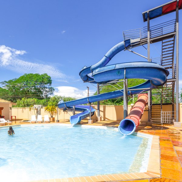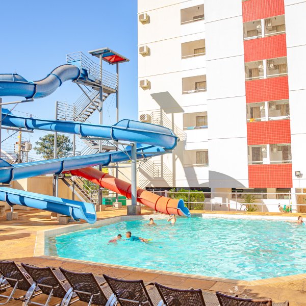 O hotel possui estrutura completa com acomodações variadas (apartamentos e suítes) equipadas com ar-condicionado, TV, frigobar, cofre, ideais para famílias, casais ou grupos. Há piscina para adultos e crianças, sauna, academia, restaurante com café da manhã buffet, área infantil (brinquedoteca) e sala de jogos. Um diferencial é que os hóspedes têm acesso gratuito ao diRoma Acqua Park em determinados dias. A localização é estratégica: muito próximo ao parque aquático, relativamente perto do centro de eventos, do centro da cidade e outras atrações de Caldas Novas. É uma ótima opção para quem quer lazer e comodidade sem abrir mão de acessos fáceis.